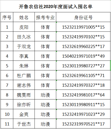 開(kāi)魯縣農(nóng)信社關(guān)于2020年度校園招聘進(jìn)入面試人員的公告