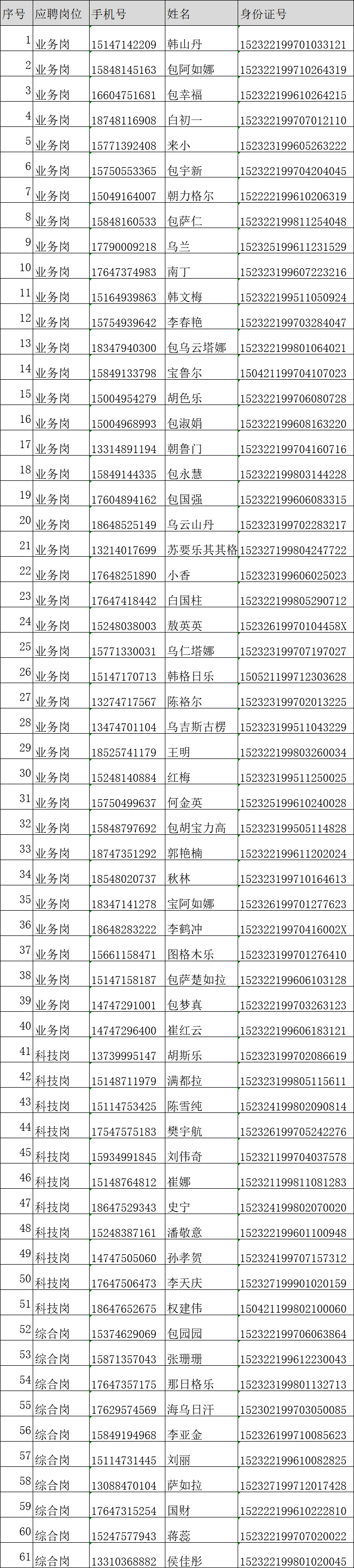 科左中旗農信社關于2020年校園招聘入圍筆試人員名單的公示
